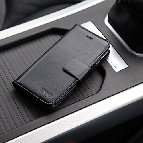 Evoaccessories iPhone 7 iPhone 8 portafoglio in pelle PU del telefono: Smart Phone e carta Flipbook organizer con chiusura magnetica per iPhone 7, Similpelle, Nero, 14cm Height X 7.3cm Width X 2.2cm Depth