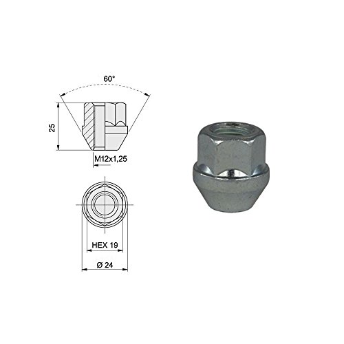 EVOCORSE Dado Ruota Aperto M12x1.25, Chiave 19, Lunghezza 25 mm, Zincato Bianco, 4 pz