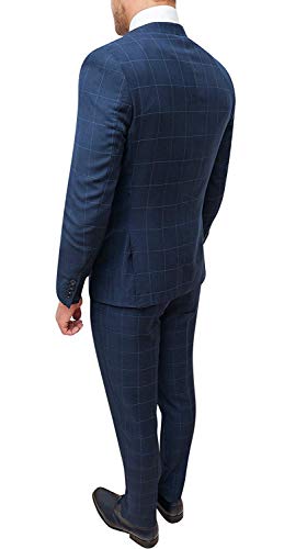 Evoga Abito Uomo Class Blu Quadri Elegante Completo Giacca con Pantaloni (54, Blu)