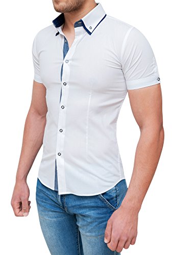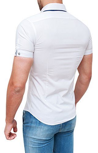 Evoga Camicia Uomo Casual Bianca Maniche Corte Slim Fit Aderente in Cotone (3XL)