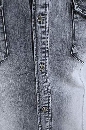 Evoga Camicia Jeans Uomo Casual a Manica Corta Slim Fit Denim (XL, Grigio Denim)