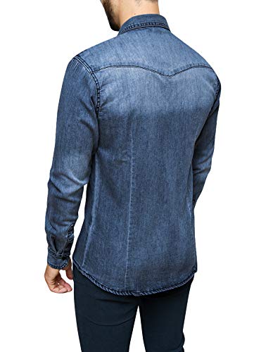 Evoga Camicia di Jeans Uomo in Cotone Denim Casual Slim Fit (XXL, Blu Scuro)