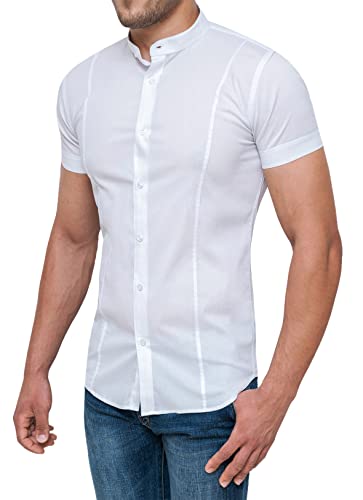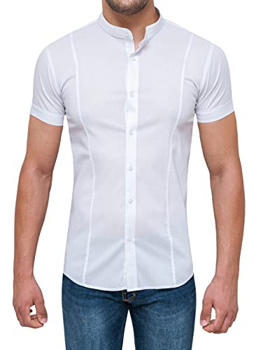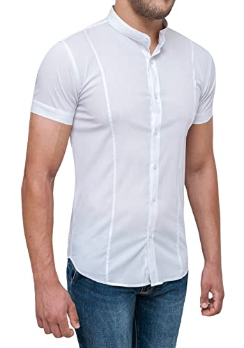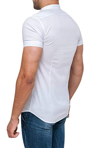 Evoga Camicia Uomo Slim Fit a Maniche Corte Casual Aderente Coreana (XL, Bianco)