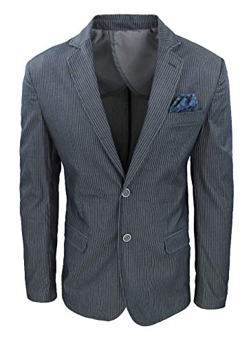Evoga Giacca Uomo Elegante gessata Slim Fit Blazer Cerimonia (s, Grigio Scuro)