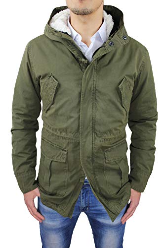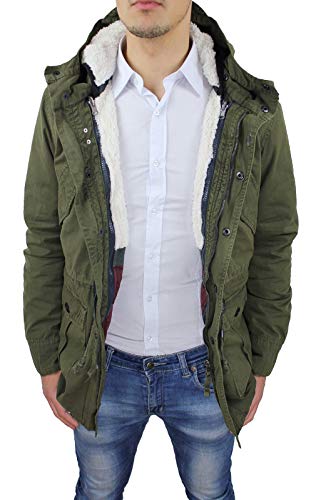 Evoga Giaccone Parka Uomo Casual Invernale Giacca Giubbotto Verde Militare con Pelliccia (S, B2 Verde Militare)