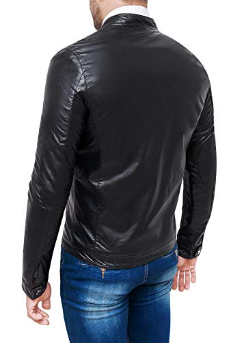 Evoga Giubbotto Giacca Uomo Nero Ecopelle Casual Giubbino Moto Coreana Slim Fit (XL, Nero)