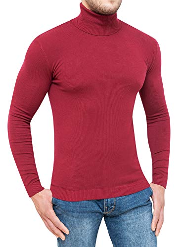 Evoga Maglione Dolcevita Uomo Rosso Bordeaux Slim Fit Maglia Pullover Aderente (l)