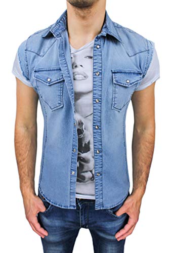 Evoga Smanicato Camicia Jeans Uomo Slim Fit Blu Denim Casual Estiva Senza Maniche (M, Blu Denim)