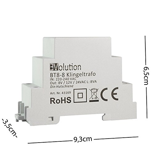 EvoJCL BT8-8 Timbre trafo 8V 12V 24V / 8VA Trafo Transformador Campana Timbre de puerta Campana Gong