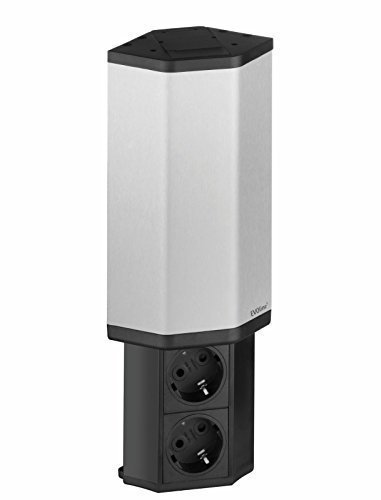 Presa da cucina con 2 prese Schuko, alloggiamento in alluminio anodizzato nero