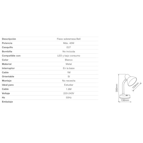 GSC Evolution 1900417 Flexo scrivania Bell E27 40W-Blu, 40 W