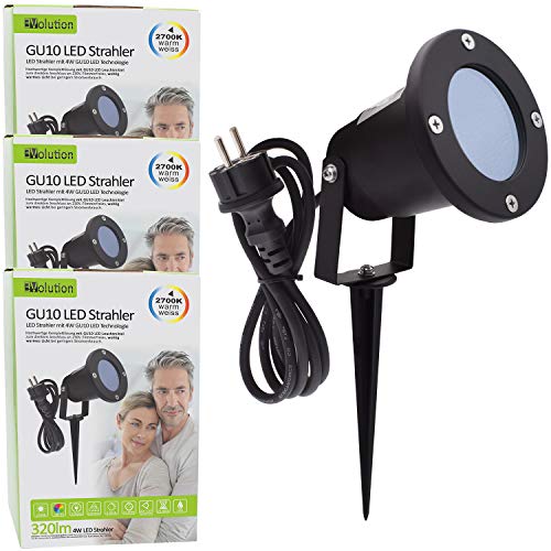3x Evolution Comfort Line GU10 LED giardino faretto con National Electronics 3.5W lampadina a LED FARETTO ESTERNO nero con paletto e cavo di collegamento con spina di protezione! GU10