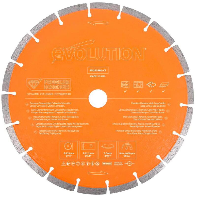 Descrizione Le operazioni di taglio più impegnative richiedono utensili altrettanto tenaci. La nostra lama diamantata per seghe a disco di alta qualità può contare su una concentrazione ancora maggiore di diamante per offrire una superficie di taglio che affronterà un taglio dopo l'altro anche nelle operazioni più difficoltose. La presente lama diamantata di alta qualità e ad alte prestazioni è stata progettata e realizzata per effettuare tagli potenti su muratura abrasiva ad alta resistenza, mattoni, lastre da pavimentazione, pietra, cemento semplice e anche con armatura in acciaio. Realizzata con stampo a caldo e dotata di una maggiore concentrazione di diamante, essa è capace di tagli del 10% più rapidi e di una maggiore durata di vita rispetto alla nostra lama diamantata per uso generico. *Test interni. La lama diamantata ideale per progettisti e muratori.