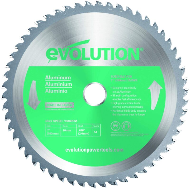 La lama da taglio per metallo con punta in metallo duro Evolution è ottima per il taglio dell'alluminio. Il corpo della lama indurito assicura che la lama funzioni a lungo tempo. La configurazione a 54 denti consente tagli rapidi ed efficienti. Diametro lama 180 mm e diametro foro 20 mm. Funziona a una velocità di 3900 giri / min.