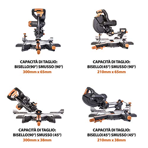 Evolution Power Tools R210SMS-300+ Troncatrice Radiale Scorrevole Multi-Materiale 210 mm con Pacchetto Plus, 230 V
