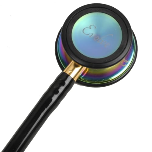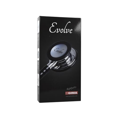 Gima Evolve Stetoscopio Duofono, Doppia Testa Multicolore Ø 48 e 36 mm, Nero, Anello e Archetto Neri, Lunghezza 75 cm, Etichetta Nome, Kit di Ricambi di Olive e Membrane