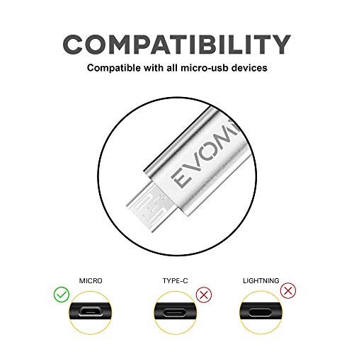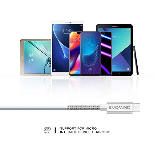 EVOMIND Cavo Micro USB 1M Carica Rapida e trasferimento Dati per Samsung Galaxy S7/6/ A10/ J, Xiaomi Redmi 9c/6a, Manette PS4/Xbox One, e Altri dispositivi MicroUSB - 1M Bianco