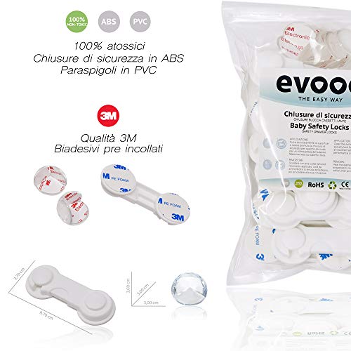 Evooo | Blocca Cassetti Per Bambini | Chiusura Di Sicurezza | Ferma Ante Armadio Chiudi Sportelli + Omaggio | Paraspigoli Bambini Angolari Trasparenti | Coprispigoli | Kit Neonato Protezione [8+2]