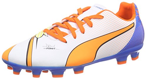 PUMA Evopower 4.2 Pop AG - Scarpe da Calcio Unisex per Bambini, Bianco (Multicolore White Orange Clown Fish Electric Blue Lemonade 01), 35.5 EU
