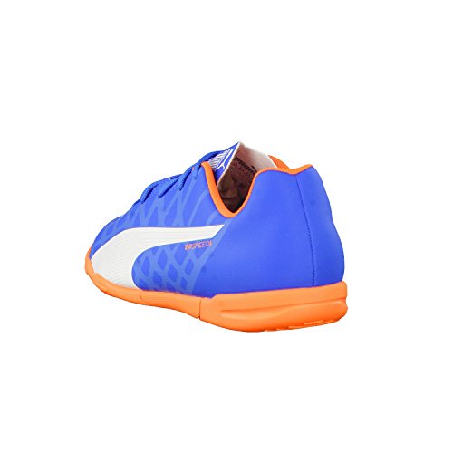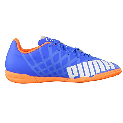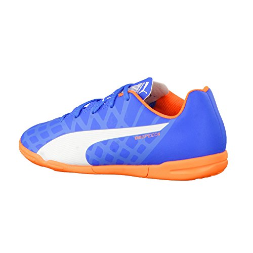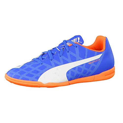 Puma evoSPEED 5.4 IT Jr. bambini scarpa da calcio senza la colorazione unica al coperto (IN) per le superfici indoor. Il evoSPEED 5.4 IT Jr. appartiene alla nuova serie Speedcell con modulo striscia sulla parte laterale e PUMA grafica sul lato mediale. L'albero realizzato in sintetico morbido superiore con allacciatura centrale convogliato in questo segmento di prezzo molto buona sensazione diretta. Il evoAptolast (inguine) è una