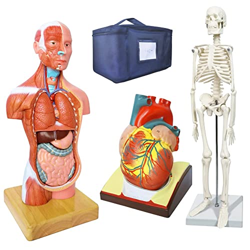 Modelli portatili, di alta qualità e convenienti: lo scheletro del modello è alto circa 17,7 pollici, il torso è alto 11 pollici e il cuore è compreso la base, circa 8 pollici. Questi modelli portatili sono progettati e realizzati con dettagli anatomici estremi. Sono un modo divertente per imparare.
