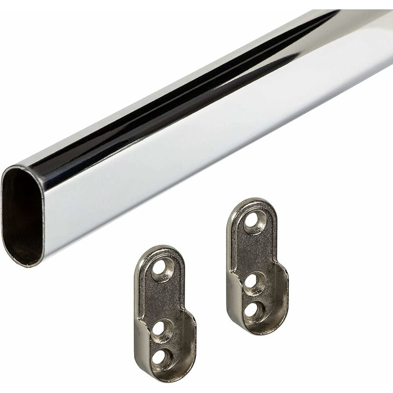 TUBO APPENDIABITI cromato lucido 15x30mm. LUNGHEZZA: A Scelta tra 1 Metro, 2 Metri, 3 Metri (da tagliare a seconda della misura desiderata). Dimensioni Standard: Ovale 15x30mm Finitura: Cromato Lucido COMPLETO di supporti laterali nichelati . Contenuto della confezione: 1x Tubo Cromato + Supporti Laterali.