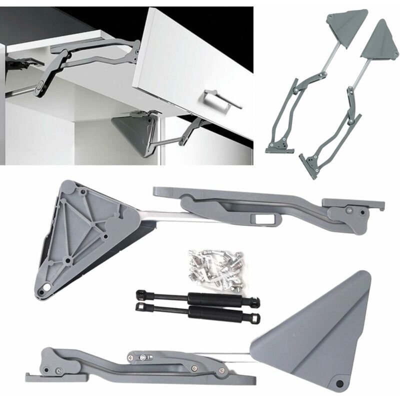 New Concept, nuovo meccanismo che non prevede l'utilizzo di cerniere. Kit per una coppia di ante pensili di larghezza da 60 a 90cm. Ampia barra stabilizzatrice regolabile per una maggiore stabilità dell'anta sia in fase di apertura che in fase di chiusura. Regolazione del free-stop per arrestare l'anta alla posizione desiderata e chiusura soft integrata, fanno di questo meccanismo un top level product per aumentare l'efficienza, l'accessibilità ed il look della tua nuova cucina. Prodotti testati, garantiti e certificati ad uso industriale, disponibili oggi solo in pronta consegna ed a prezzi accessibili. ATTENZIONE: Verificare il peso dell'anta prima di effettuare l'acquisto.