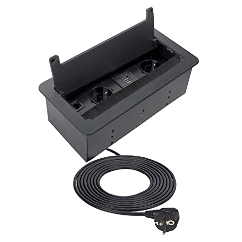 EVOTRADE Multipresa a Scomparsa da Incasso con 2 SCHUKO 2 USB 1 HDMI 1 Rj45 Presa Multipla per Scrivania Ufficio (Black)