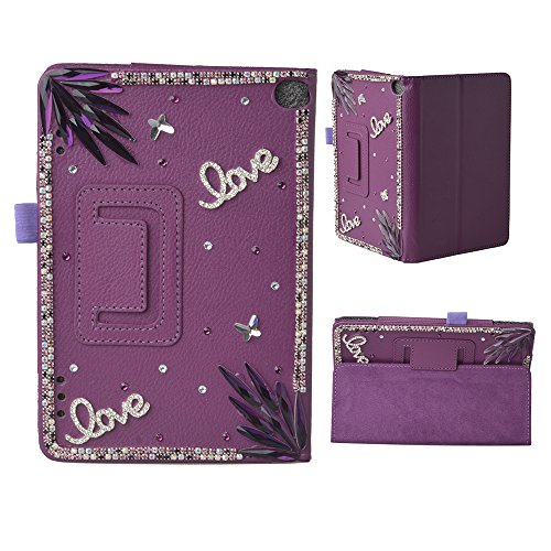 Evtech 3D BRILLANTINI STRASS Kindle Fire HD 17,78 cm display Tablet (5th Generation - 2015 pubblicando only) Fole caso Slim Fit conciarie STAN ding protezione rivestimento con funzione Auto Sleep/Wake funzione, lilla, 7''