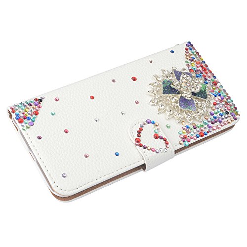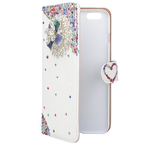 EVTECH (TM colorato Strass Floreale Love-Forme Bianca Custodia in Pelle PU Ritorno Foglio e Flip Cover Stand con Supporto di Telefono e Slot di Carte