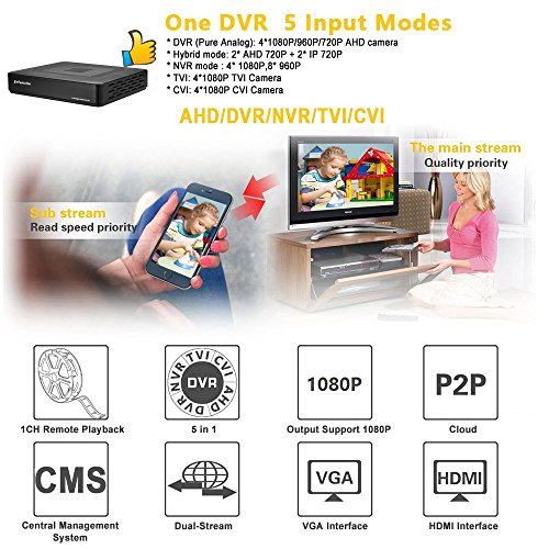 Evtevision 4 Canali 1080N CCTV Videoregistratore DVR Ibrido NVR H.264 4CH HDMI Sicurezza Video Recorder AHD/TVI/CVI/CVBS/IP 5 In 1 Email Allarme di Rilevamento del Movimento,No HDD Incluso