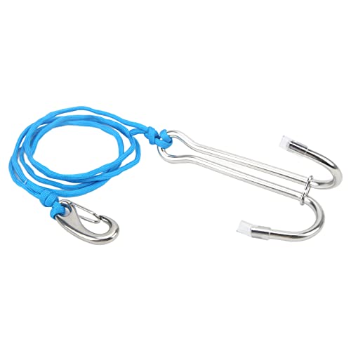 EVTSCAN Scuba Diving Clip a Doppio Gancio in Acciaio Inossidabile per Reef Drift, con Corda da 3,9 Piedi, Ideale per Immersioni in Drift, Facile da Fissare al GAV(Blu)