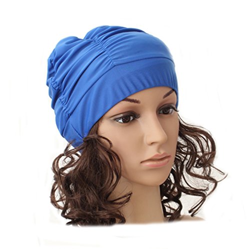 Ewandastore design pieghettato nylon Cloth Swim Cap grande nuoto Hot Spring Bathing Caps Lycra Beanie cappello per adulti da uomo e da donna con capelli lunghi, Equalizer 2.0 True Balance