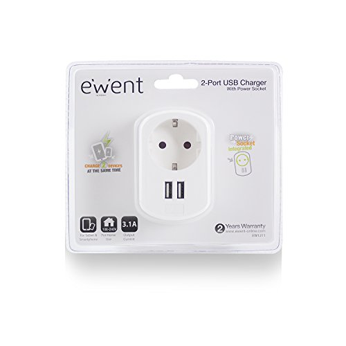 Ewent Caricatore EW1211 Caricabatteria Universale USB 3.1 con Presa Passante per iPhone, Samsung Galaxy, Smartphone Android, Tablet, Bianco, Compatto