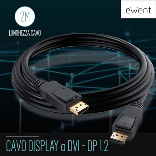 Ewent Cavo DisplayPort 8K DP 1.4 da 2 mt, Risoluzione 8K 7680 x 4320 @ 60Hz, 4K 3840 x 2160 @120 Hz - 1920 x 1200 @ 240 Hz - Larghezza di Banda Fino a 32,4 Gbits, HDR10, DSC 1.2, 2 metri, Nero