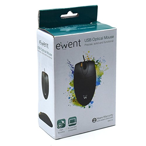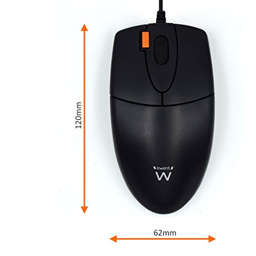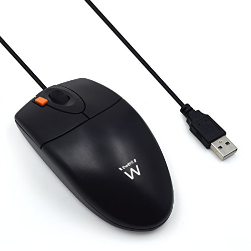 Ewent EW3155 Mouse Ottico 1000dpi USB + PS2, 4 pulsanti, Tasto doppio click per accesso rapido alle App, nero