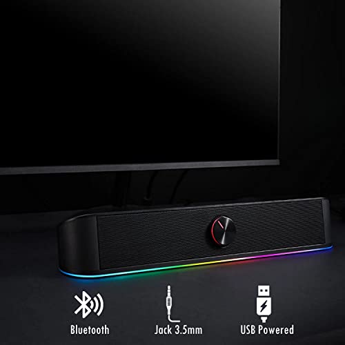 Ewent EW3525 Speaker Soundbar cablati e Bluetooth Illuminata RGB, Casse per PC 12W, Speakers Bluetooth, Altoparlanti Stereo con Illuminazione RGB regolabile, Alimentazione USB, nera