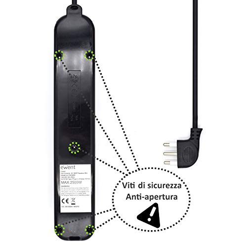 Ewent EW3855 Multipresa Elettrica 12 posti 4 polivalenti (Schuko 10/16A) e 8 bivalenti ITA 10/16A, Spina 16A, cavo 1.5 mt, colore nero