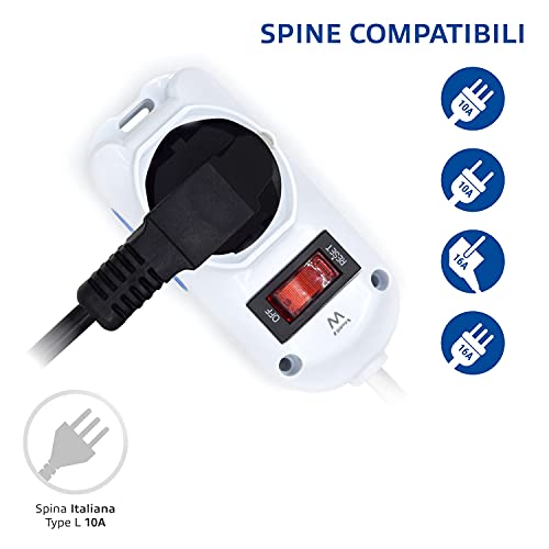 Ewent EW3918 Multipresa Ciabatta Elettrica 3 Posti, 2 prese Ita 10/16A+1Schuko, protezione Sovraccarico Sovratensione & V-TAC Adattatore Tripla Presa Elettrica 3 Posti con Interruttore