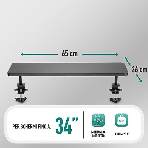il suo morsetto si attacca facilmente alla scrivania semplicemente ruotando le farfalle (spessore massimo del piano del tavolo 1,3" (33 mm). È la soluzione definitiva per aumentare lo spazio sulla tua scrivania senza dover aggiungere altri tavoli o altri mobili.