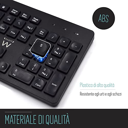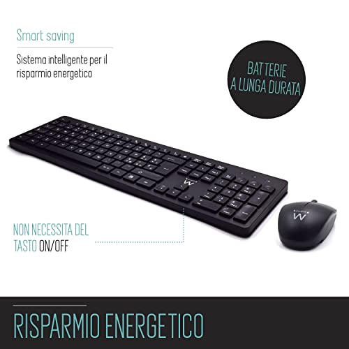 Ewent Tastiera e Mouse Wireless, Kit tastiera Mouse Wireless, Tastiera con tasti concavi, Ricevitore 2-in-1 per PC, Notebook, Laptop, Layout Italiano