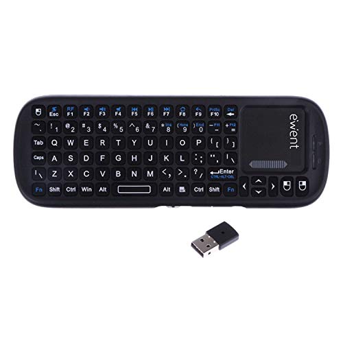 Ewent Mini Tastiera Wireless 2.4Ghz senza fili con Touchpad, Layout US per PC, Android TV, Android Box, PS3