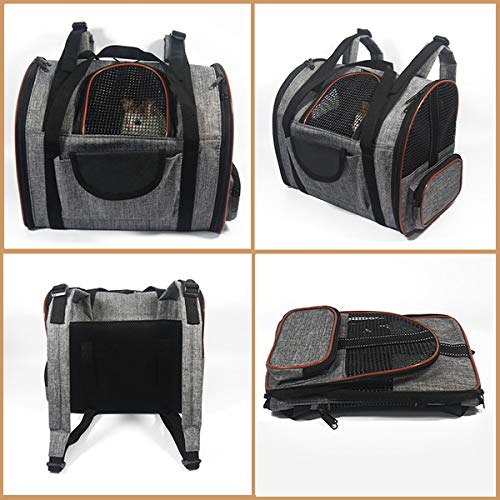 Ewolee - Zaino per cani e gatti, approvato dalla compagnia aerea, borsa da viaggio pieghevole con spallacci per piccoli animali come cuccioli, gattini, conigli, fino a 2,7 kg, colore: grigio
