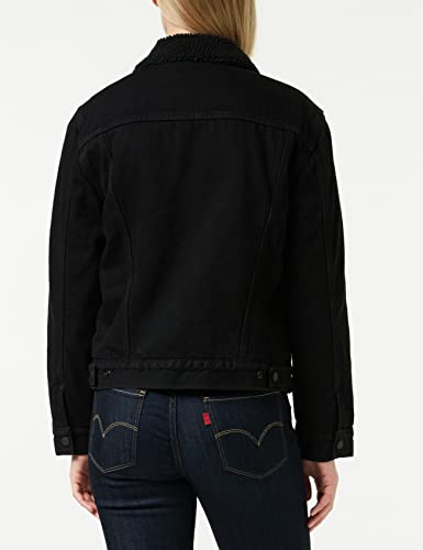 Levi's Ex-Bf Sherpa Trucker, Giacca In Jeans Donna, Nero (Forever Black 0015), XX-Small