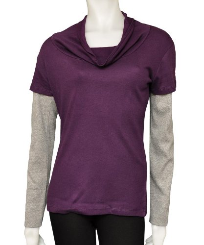 Ex-Chain Store - Top da donna con collo a collo alto, con inserto lungo, colore: viola