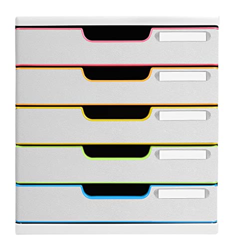 EXACOMPTA - Rif. 301913D - MODULO A4 - Cassetto 5 cassetti chiusi per documenti A4+ - Dimensioni esterne: profondità 35 x larghezza 28,8 x altezza 32 cm - bianco/arlecchino/bianco