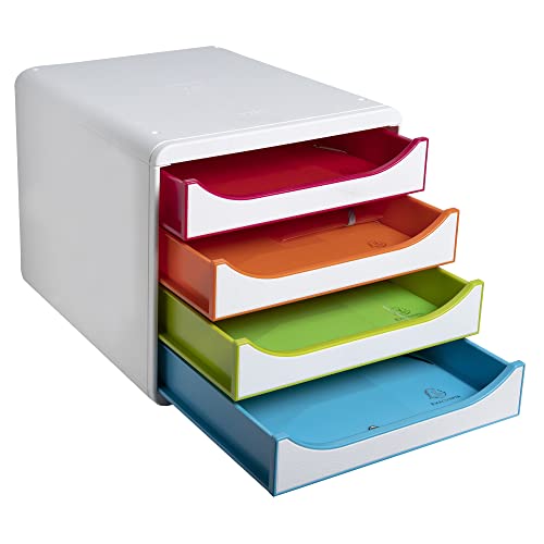 Exacompta - Rif. 310913D - BIG-BOX Black Office - Cassettiera 4 cassetti per formato A4+ - Dimensioni esterne: profondità 34,70 x larghezza 27,80 x altezza 26,70 cm - Bianco/arlecchino/bianco