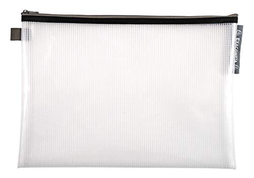 Exacompta - Rif. 34150E - Tasche in rete trasparente con cerniera - Adatto per documenti A4, rete in nylon da 0,3 mm - Adatto per conservare documenti, accessori - Colori assortiti (confezione da 10)