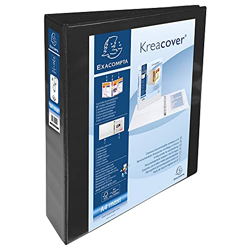 Exacompta - 51843NE - 1 Raccoglitore Personalizzabile Kreacover - 4 Anelli a D 40 mm - Copertina Foderata PP con Tasca Fronte/Dorso/Retro - Dorso 64 mm - F.to Esterno 28.5x32 cm per A4 Maxi - Nero