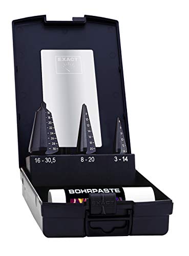 EXACT 50118 - Set di punte coniche per lamiera, 3-14/4-20/16-30,5 mm + pasta per foratura, HSS, rivestimento TiAlN